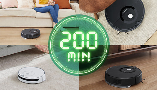大容量の充電式バッテリーを搭載。一度で最大200分、200㎡までの駆動※を実現。広い部屋でも安心です。