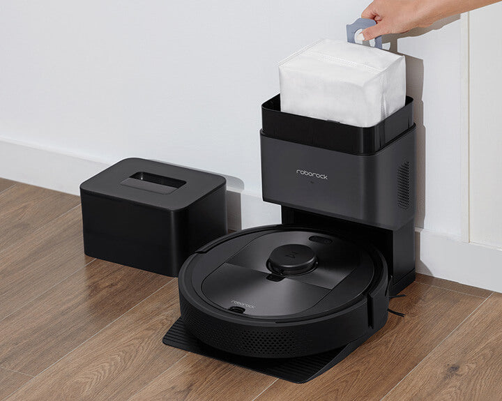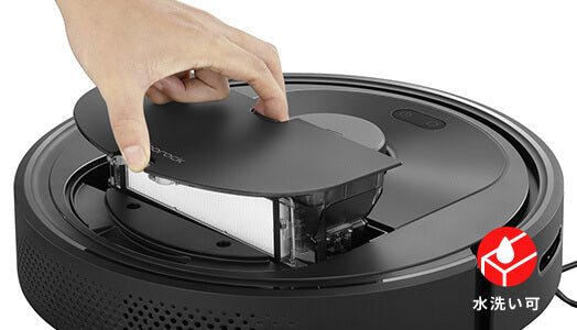 掃除完了後、本体のダストボックスに溜まったゴミを自動で吸い上げ、ゴミを捨てる手間を減らします。