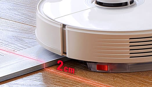 14種20個のセンサーが連携し、カーペットの有無、すき間の高さ、家具・壁までの距離などを検知。追突などを回避し、部屋のすみずみへのスムーズな移動を可能にしています。 また、落下防止センサーを搭載し、玄関などの段差から落ちる心配もありません。