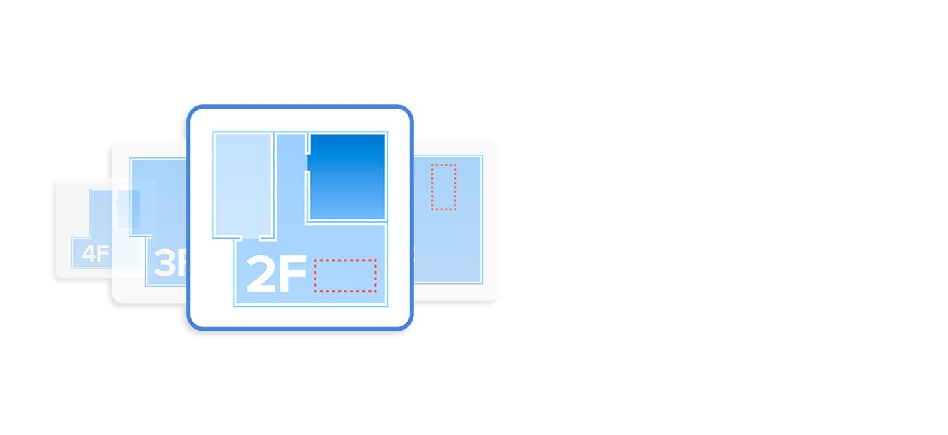 室内を素早く正確にマッピングし、部屋の形状を把握します。