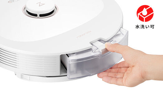 掃除完了後、本体のダストボックスに溜まったゴミを自動で吸い上げ、ゴミを捨てる手間を減らします。