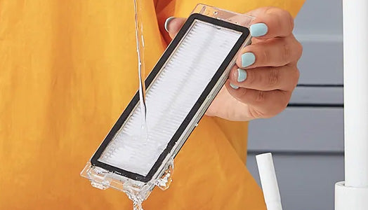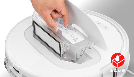 エアフィルター。Qrevo Lの本体に採用したエアフィルターは、花粉やカビを含むハウスダストなど微粒子(花粉)を最大95%集じんすることができます。水洗いできるので、繰り返し利用することが可能です。
