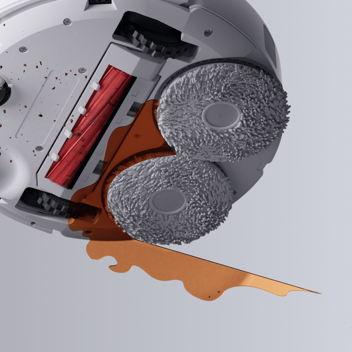 水量調整可能一定の圧力をかけながら、最大毎分200回転の高速回転をする水拭きモップが、床にこびりついた汚れもしっかりと拭き取ります。水量は30段階まで調整が可能です。また、カーペットを感知すると、モップが10mm自動でリフトアップ※。カーペットを濡らすことなく吸引掃除のみを行います。
