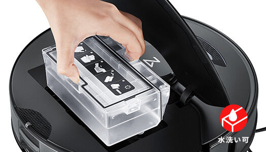 ![]()  水洗い可能なダストボックス。 ダストボックスはワンタッチで取り外して水洗いできるので、