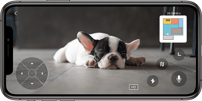 リモート操作で本体を動かして、留守中のペットなどの様子も確認できて安心。