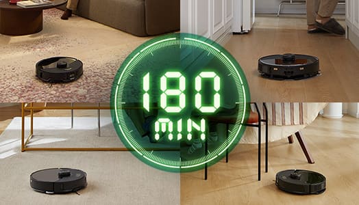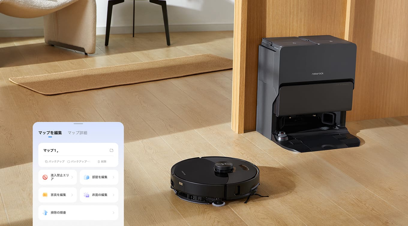 「お急ぎ掃除モード」を選択すると、通常ルートの掃除より30%速く掃除を完了します。また、「クイックマッピング」は、掃除しながらマッピングする従来の方式と比較して、最大6倍の速さで各部屋のマッピングを行います。お急ぎの掃除もRoborockにお任せください。