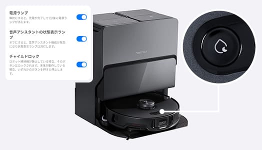 また、水拭きのみのモードやドックに戻るときに、メインブラシを持ち上げる「メインブラシ自動リフトアップ機能」も搭載。