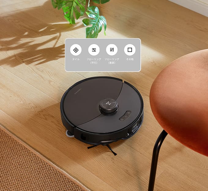 床の状況に合わせて、吸引力や水拭き強度などのモードを