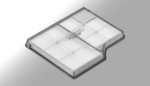 エアフィルター。Saros 10の本体に採用したエアフィルターは、花粉やカビを含むハウスダストなど微粒子(花粉)を最大95%集じんすることができます。水洗いできるので、繰り返し利用することが可能です。